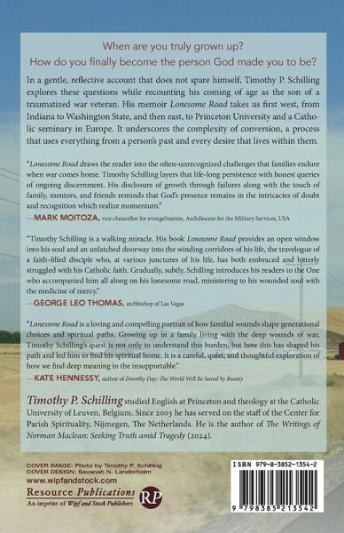 When are you truly grown up? How do you finally become the person God made you to be? In a gentle, reflective account that does not spare himself, Timothy P. Schilling explores these questions while recounting his coming of age as the son of a traumatized war veteran. His memoir Lonesome Road takes us first west, from Indiana to Washington State, and then east, to Princeton University and a Catholic seminary in Europe. It underscores the complexity of conversion, a process that uses everything from a person's past and every desire that lives within them.