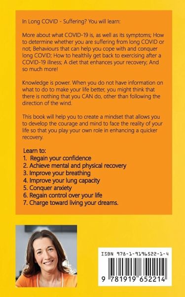 Are you tired of letting long COVID control you? You might be saying, "Do I have an option?" and the answer to that is, "Yes, you have plenty of options!" There is a lot that you can do to free yourself from the pangs of long COVID. You can take back your life and regain your control over it. It is a matter of choice, and everything begins in the mind. Take the initiative to remove long COVID off the decision-making chair as far as your life is concerned. You might be wondering how, but that is why this book was written-to guide you on how to regain control over the physical, emotional, and psychological aspects of your life after a COVID-19 illness. In Long COVID-Suffering?, you will learn: More about what COVID-19 is, as well as its symptoms How to determine whether you are suffering from long COVID or not Behaviours that can help you cope with and conquer long COVID How to healthily get back to exercising after a COVID-19 illness A diet that enhances your recovery Breathing techniques How to deal with fatigue And so much more! Learn from Rita, a Health and Fitness Specialist and a qualified Covid-19 Rehabilitation Provider. She will guide you through the ins and outs of the virus, as well as impart her years of education and knowledge in expert recovery protocols. Having suffered from Covid-19 during 2020, Rita was keen to learn as much as possible about this disease, so as to help others on their road to rehabilitation. Pick up From Where You Left Off and Live Your Best Life! Knowledge is power. When you do not have information on what you can do to make your life better, you might think that there is nothing that you can do other than following the direction of the wind. This could have been your case before, but not after reading this book. This book will help you to create a mindset of taking the bull by its horns. This means that you will develop the courage and mind to face the reality of your life so that you play your own primary role in enhancing a quicker recovery. Regain your confidence Achieve your mental and physical recovery Improve your breathing and lung capacity Conquer anxiety Regain control over your life Charge toward living your life again To make all these things a reality in your life, buy this book today!