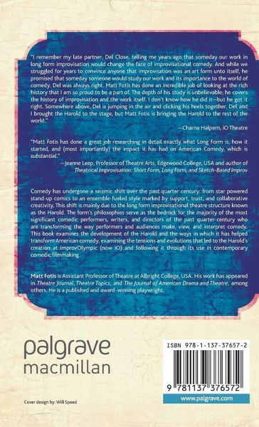 "I remember my late partner, Del Close, telling me years ago that someday our work in long form improvisation would change the face of improvisational comedy. And while we struggled for years to convince anyone that improvisation was an art form unto itself, he promised that someday someone would study our work and its importance to the world of comedy. Del was always right. Matt Fotis has done an incredible job of looking at the rich history that I am so proud to be a part of. The depth of his study is unbelievable; he covers the history of improvisation and the work itself. I don't know how he did it - but he got it right. Somewhere above, Del is jumping in the air and clicking his heels together. Del and I brought the Harold to the stage, but Matt Fotis is bringing the Harold to the rest of the world." - Charna Halpern, iO Theatre