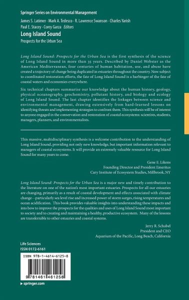 The U.S. Ocean Commission Report identified the need for regional ecosystem assessments to support coastal and ocean management. These assessments must provide greater understanding of physical and biological dynamics than assessments at global and national scales can provide but transcend state and local interests. This need and timeliness is apparent for Long Island Sound, where a multi-state regional restoration program is underway for America's most urbanized estuary. Synthesis of the Long Island Sound ecosystem is needed to integrate knowledge across disciplines and provide insight into understanding and managing pressing issues, such as non-point sources of pollution, coastal development, global climatic change, and invasive species. Currently, there is a need for a comprehensive volume that summarizes the ecological and environmental dynamics and status of Long Island Sound and its myriad ecosystems.