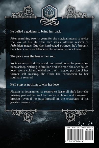 Nothing will keep this powerful warlock from the woman he calls his own. He defied a goddess to bring her back. After searching twenty years for the magical means to revive the love of his life from stasis, Alastair resorts to forbidden magic. But the hard-edged stranger he’s brought back bears no resemblance to the woman he once knew. The price was the loss of her soul. Rorie wakes to find the world has moved on in the years she’s been asleep. Nothing is familiar, and the man she once called lover seems cold and withdrawn. With a good portion of her former self missing, she finds the connection to her soulmate severed. He’ll stop at nothing to win her love. Alastair is determined to restore to Rorie all she’s lost—the missing parts of her soul, her ancestral home, and a wayward brother—even if he puts himself in the crosshairs of his greatest enemy to do it.