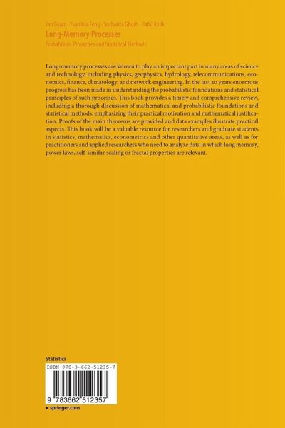 Long-memory processes are known to play an important part in many areas of science and technology, including physics, geophysics, hydrology, telecommunications, economics, finance, climatology, and network engineering. In the last 20 years enormous progress has been made in understanding the probabilistic foundations and statistical principles of such processes. This book provides a timely and comprehensive review, including a thorough discussion of mathematical and probabilistic foundations and statistical methods, emphasizing their practical motivation and mathematical justification. Proofs of the main theorems are provided and data examples illustrate practical aspects. This book will be a valuable resource for researchers and graduate students in statistics, mathematics, econometrics and other quantitative areas, as well as for practitioners and applied researchers who need to analyze data in which long memory, power laws, self-similar scaling or fractal properties are relevant.