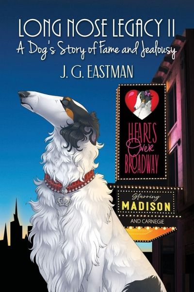 For dog lovers of all ages. Long Nose Legacy II: A Dog's Story of Fame and Jealousy is the fanciful tale of two pampered and privileged Borzoi (Russian Wolfhound) sisters-Madison, the glamorous show dog celebrity turned Broadway star. And Carnegie, who never cut it as a show dog or even "off-off Broadway" but, nevertheless, considers herself to be an even greater luminary (and, generally, more adorable) than Madison-are torn apart by fame and jealousy in Carnegie's quirky quest to become the famous-est dog in the world. After moving with their "owners" to a luxurious Upper Eastside penthouse overlooking Central Park in the heart of Manhattan, NYC, Borzoi sisters, Madison and Carnegie, are discovered by a famous Broadway show producer and land starring roles in the big "Hearts Over Broadway" musical. Dogs starring in a Broadway musical, you ask? Oh yes! They sing (AKA howl)! They dance! Madison's emotional scenes with the famous (human) superstar, Mandi Marin, are show stoppers. It's spectacular! That is...until Carnegie quite literally stops the show with her comedic and disastrous attempts to steal the spotlight from her sister. And when Carnegie takes off on a quirky quest to surpass her sister's fame and become the "famous-est" dog in the world, all bets are off! If you adore dogs...if you are fascinated by canine actors starring in a Broadway musical...and/or you totally "get" sibling rivalry...you will LOVE Long Nose Legacy II: A Dog's Story of Fame and Jealousy! It's the exciting standalone sequel to the award-winning Long Nose Legacy: A Dog's Story of Loyalty and Royalty.