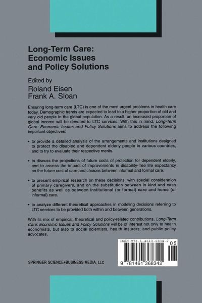 With its mix of empirical, theoretical and policy-related contributions, Long-term Care: Economic Issues and Policy Solutions will be of interest not only to health economists, but also to social scientists, health insurers, and public policy advocates.