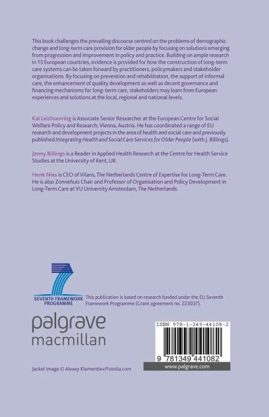PART I: INTRODUCTION Addressing Long-Term Care as a System; Jenny Billings, K.Leichsenring & L.Wagner The Emerging Identity of Long-Term Care Systems in Europe; H.Nies, K.Leichsenring & S.Mak PART II: OVERCOMING THE HEALTH-SOCIAL CARE DIVIDE AND THE FORMAL-INFORMAL CARE DIVIDE User Perspectives: Examining LTC Policies from the Standpoint of Older People in Need of Care and Informal Carers; M.Naiditch, J.Triantafillou, P.Di Santo, S.Carretero & E.Hirsch-Durrett Joint Working Between Health and Social Care; K.Allen, J.Glasby & R.Rodrigues Converging Methods to Link Social and Health Care Systems and Informal Care: Confronting Nordic and Mediterranean Approaches; J.Garcés, F.Ródenas & T.Hammar Integration as 'Boundary Redefinition Process'; P.Gobet & T.Emilsson PART III: INNOVATIVE CASES IN THE CONSTRUCTION OF LONG-TERM CARE IN EUROPE Prevention and Rehabilitation Within Long-Term Care: Applying a Comprehensive Perspective; S.Kümpers, A.Dieterich, G.Ruppe & L.Wagner The Quest for Quality in LTC; K.Leichsenring, H.Nies & R.van der Veen Making Sense of Differences: The Mixed Economy of Funding and Delivering Long-Term Care; R.Rodrigues & H.Nies The 'Care Gap' and Migrant Carers; R.Bednarik, P.Di Santo & K.Leichsenring Volunteering in Long-Term Care for Older People: The Potential for Social Innovation; K.Repkova, K.Stiehr & B.Weigl The Role of Information Technology in LTC for Older People; J.Billings, S.Carretero, G.Kagialaris, T.Mastroyiannakis & S.Meriläinen-Porras Palliative Care Within Long-Term Care Systems: Beyond End of Life? L.Holdsworth & G.Ruppe PART IV: CONCLUSIONS Improving the Evidence Base; J.Billings Improving Policy and Practice in Long-Term Care; K.Leichsenring, J.Billings & H.Nies