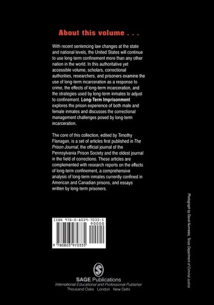 Foreword - Norman A Carlson Preface - Timothy J Flanagan PART ONE: PERSPECTIVES ON LONG-TERM IMPRISONMENT Long-Term Incarceration - Timothy J Flanagan Issues of Science, Policy and Correctional Practice An American Portrait of Long-Term Imprisonment - Timothy J Flanagan Long-Term Offenders in Canada - John R Weekes PART TWO: LONG-TERM PRISONERS ON LONG-TERM IMPRISONMENT The Long-Termers - Ronald Wikberg and Burk Foster Louisianäs Longest Serving Inmates and Why They