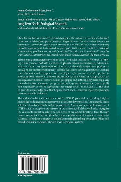Foreword 1 (Wolfgang Cramer and Steve Carpenter).- Foreword 2 (Donald Worster).- 1. Introduction. Long-Term Socio-Ecological Research: Scope and History.- PART I: LTSER Concepts, Methods and Linkages.- 2. Sociometabolic Transitions and the Human Appropriation of Net Primary Production: What Promise Do They Hold For LTSER?- 3. Integrated Socio-Ecological Modeling: Experiences From European LTSER Platforms.- 4. Modeling Transport as a Key Constraint to Urbanization in Pre-Industrial Societies.- 5. The Environmental History of the Danube River Basin as an Issue of Long-Term Socio-Ecological Research.- 6. The Relevance of 'Critical Scales' For LTSER.- 7. Biohistory.- 8. Geographic Approaches to LTSER: Principal Themes And Concepts With a Case Study of Andes-Amazon Watersheds.- 9. The Contribution of Anthropology To Concepts Guiding LTSER Research.- PART II: LTSER Applications Across Ecosystems, Time and Space.- 10. Viewing the Urban Socio-Ecological System Through a Sustainability Lens: Lessons and Prospects From the Central Arizona-Phoenix LTER Program.- 11. A City and Its Hinterland: Vienna's Energy Metabolism 1800-2006.- 12. Sustaining Agricultural Systems in the Old and New Worlds: A Long-Term Socio-Ecological Comparison.- 13. How Material and Energy Flows Change Human Practices and Environments: The Transformation of Agriculture in the Eisenwurzen Region, 1860-2000.- 14. The Intimacy of Human-Nature Interactions on Islands.- 15. Global Socio-Metabolic Transitions.- PART III: LTSER Formations and the Transdisciplinary Challenge.- 16. Building an Urban LTSER: The Case of the Baltimore Ecosystem Study and the D.C. / B.C. ULTRA-Ex Project.- 17. Development of LTSER Platforms in LTER-Europe: Challenges and Experiences in Implementing Place-Based Long-Term Socio-Ecological Research in Selected Regions.- 18. Developing Socio-Ecological Research in Finland: Challenges and Progress Towards a Thriving LTSER Network.- 19. The Eisenwurzen LTSER Platform(Austria) - Implementation and Services.- 20. Fostering Research Into Coupled Long-Term Dynamics of Climate, Land Use, Ecosystems and Ecosystem Services in the Central French Alps.- 21. Long-Term Socio-Ecological Research in Mountain Regions: Perspectives From the Tyrolean Alps.- 22. Experiences From the Ötztal Valley in the Tyrolean High Alps: The Transdisciplinary Challenge.- 23. Conclusions.- Index.