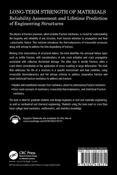 This textbook introduces the thermodynamics of irreversible processes to address the time dependency of fracture. It identifies principal structural failure types such as brittle damage and ductile failure and covers the life of a structure in a specific environment and load condition, addressing cooperative and solo fracture.