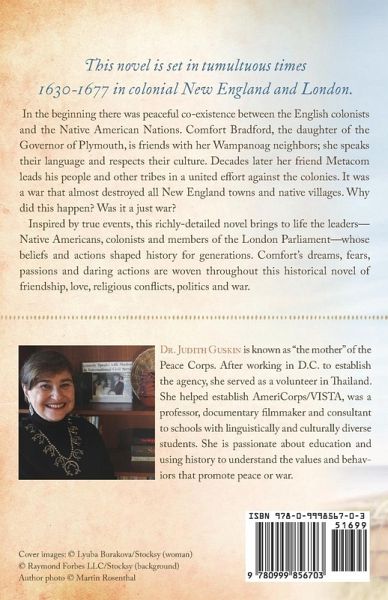 This novel is set in tumultuous times 1630-1677 in colonial New England and London. In the beginning there was peaceful co-existence between the English colonists and the Native American Nations. Comfort Bradford, the daughter of the Governor of Plymouth, is friends with her Wampanoag neighbors; she speaks their language and respects their culture. Decades later her friend Metacom leads his people and other tribes in a united effort against the colonies. It was a war that almost destroyed all New England towns and native villages. Why did this war happen? Was it a just war? Inspired by true events, this richly-detailed novel brings to life the leaders - Native Americans, colonists and members of the London Parliament - whose beliefs and actions shaped history for generations. Comfort's dreams, fears, passions and daring actions are woven throughout this historical novel of friendship, love, religious conflicts, politics and war.