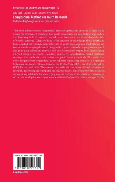 Understanding young lives across time and space.- The development of longitudinal youth research.- Longitudinal youth research with Lithuania's Soviet and post-Soviet generations.- Using prospective and retrospective interviews to understand girls' educational aspirations, subjectivities and social change.- Conclusion: The practice of longitudinal research.- Understanding change through Australian longitudinal mixed-method multicohort youth research.- Insights on gender through Argentinian longitudinal youth research.- Young people and sudden post-socialist changes in Estonia at the beginning of the 1990s: experiences conducting longitudinal research.- Conclusion: Insights from longitudinal research.- Working with creative and dialogic methods in longitudinal research.