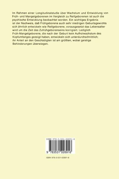 Diesem Bericht über Ergebnisse der bisherigen Auswertung psychologischer Untersuchungsbefunde liegt eine 1967 begonnene Longitudinalstudie über Wachstum und Entwicklung von früh- und reifgeborenen Kindern von der Geburt bis zum 6. Lebensjahr zugrunde. die an der Universitäts-Kinderklinik Bonn (Direktor: Professor Dr.med. Heinz Hungerland bis August 1974. danach Professor Dr.med. Walther Burmeister) mit Unterstützung des Bundesministeriums für Jugend. Familie und Gesundheit. des Ministeriums für Wissenschaft und Forschung des Landes Nordrhein-Westfalen und der Fritz Thyssen Stiftung durchgeführt worden ist. Das Ziel der in Deutschland in dieser Art erstmaligen Longitudinalstudie ist die Ermittlung von Normalwerten für Wachstum sowie neurologische. motorische und psychische EntwiCklung der Reifgeborenen und FrÜhgeborenen von der Geburt an bis zum Beginn des Schulalters. Solche Normalwerte mit ihrer Variationsbreite sind für den klinisch und praktisch tätigen Arzt oder Psychologen zur Beurteilung von Kindern insbesondere bei Vorsorgeuntersuchungen eine wichtige Voraussetzung. Die im Rahmen der Gesamtstudie vorliegenden über 800.000 Daten numerischer und nicht-numerischer Art erstrecken sich auf Gewicht. Körpergröße. Kopfumfang und 20 weitere international abgestimmte Parameter sowie auf den kliniSChen. neurologischen und psychologischen BereiCh.