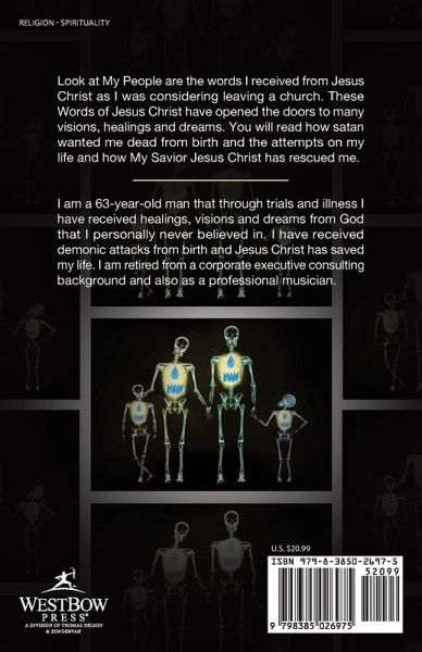 Look at My People are the words I received from Jesus Christ as I was considering leaving a church. These Words of Jesus Christ have opened the doors to many visions, healings and dreams. You will read how satan wanted me dead from birth and the attempts on my life and how My Savior Jesus Christ has rescued me.