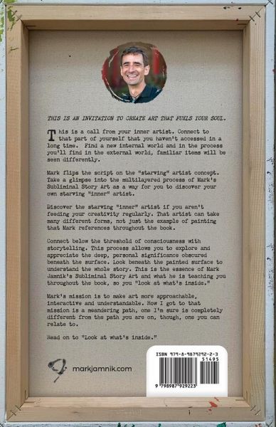 Whether you think of yourself right now, as an artist or not, by the end of this book, you'll see yourself in a whole new way. Why? Most (all) kids in kindergarten consider themselves artists. Their creativity simply expresses itself with no judgment and somewhere along the way, something happens and that creative child is sent to the "corner for a time out" and therefore, many people don't see themselves as artists or even desire to be an artist because of that negative association to their creative flow. On top of that, the world is driven towards consumerism (profit and growth at all costs). Deep down, people want to do something in the arts and don't know how to get the starving "inner" artist playing and creating again. Many think it falls on two sides, the extremism of quitting their job to pursue their passion full out OR simply thinking "I'm not great at it? So why start now?" If you enjoy it, that is what should draw you in. Don't worry about if you're an expert, take on the challenge and see what is yet to be discovered or revealed. What lies inside and underneath, expresses itself outside. You will find the simple joys you had as a child when you were creating for the sake of creation. Your artist creates things that fuel your soul. You connect deeply to a part of yourself that you haven't connected to in a long while. The external world, possessions and "success" will take on a new perspective. The "messiness on the inside" creates for a "masterpiece on the outside." As a result of reading this book, regardless of your current job or how you see yourself as an artist, you'll see the importance and the possibility of expressing your creativity (as an artist or creativity in general) in a whole new way. Readers will see the necessary steps to tell their starving "inner" artist that was sent to the "corner for a time out" and help them find their way back on the creative journey, otherwise known as the "artists path." In this 2nd edition of the book, Mark Jamnik updated the overall look and feel through the book along with additional ways to engage with Subliminal Story Art.