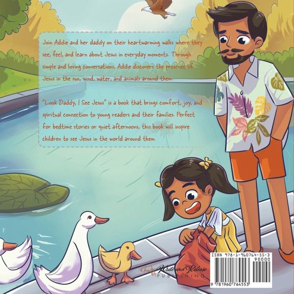 Take a heartwarming journey with Addie and her Daddy in this amazing children's book, "Look Daddy, I See Jesus." This enchanting story captures the innocent wonder of a child's faith as Addie explores the world around her, discovering Jesus in everyday life. From feeling the warmth of the sun to sensing the gentle breeze, Addie learns that Jesus is always with her, communicating through nature and the world He created. Each page brings a discovery, reinforcing the presence of Jesus in every aspect of life. This touching story is perfect for parents who want to teach their children about faith in a simple yet profound way. The connection between Addie and her father, combined with the lessons of seeing Jesus in everyday situations, make this book an ideal addition to any child's collection. Why You'll Love This Book: * Inspires Faith: Helps children see and feel Jesus in their everyday lives. * Strengthens Bonding: Encourages quality time between parents and children through shared reading. * Beautiful Illustrations: Captivates young readers with vibrant and engaging artwork. * Simple Language: Easy-to-understand text that is perfect for young readers. Join Addie on her delightful walk and discover the many ways Jesus reveals Himself in the world around us. "Look Daddy, I See Jesus" is a must-have for any family looking to nurture their child's faith and understanding of God's presence.