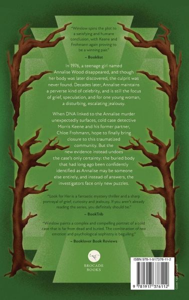 "Look for Her ratchets up the tension while offering moments of sheer grace." - NY Times bestselling author Riley Sager In 1976, a teenage girl named Annalise Wood disappeared, and though her body was later discovered, the culprit was never found. Decades later, Annalise maintains a perverse kind of celebrity, and is still the focus of grief, speculation, and for one young woman, a disturbing, escalating jealousy. When DNA linked to the Annalise murder unexpectedly surfaces, cold case detective Morris Keene and his former partner, Chloe Frohmann, hope to finally bring closure to this traumatized community. But the new evidence instead undoes the case's only certainty: the buried body that had long ago been confidently identified as Annalise may be someone else entirely, and instead of answers, the investigators face only new puzzles. "Winslow spins the plot to a satisfying and humane conclusion, with Keene and Frohmann again proving to be a winning pair." -Booklist "Look for Her is a fantastic mystery thriller and a sharp portrayal of grief, curiosity and jealousy. If you aren't already reading the series, you definitely should be." -BookTrib "Winslow paints a complex and compelling portrait of a cold case that is far from dead and buried. The combination of raw emotion and psychological sophistry is beguiling." -Booklover Book Reviews