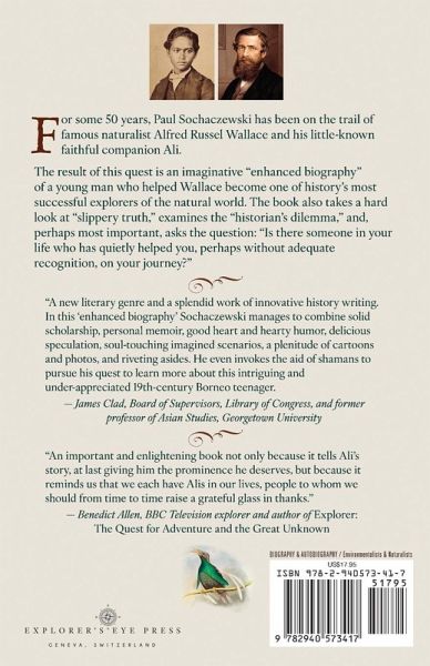 A Great Man and His Unheralded Assistant For some 50 years, Paul Sochaczewski has been on the trail of famous naturalist Alfred Russel Wallace and his little-known assistant Ali. The result of this quest is an imaginative "enhanced biography" of an illiterate 19th-century teenager from Borneo who helped Wallace become one of history's most successful explorers of the natural world. This deliciously speculative book, filled with humor and touching scenes of imagined conversations, takes a hard look at "slippery truth," and, perhaps most important, asks the question: "Is there someone in your life who has quietly helped you, perhaps without adequate recognition, on your journey?" In this innovative approach to biography, you'll discover: New clues that expand our knowledge of Ali's background and career Why writing the history of a 19th-century teenage boy from Borneo is so challenging Details about how Ali collected some 5,000 of Wallace's 8,050 bird specimens Imagined conversations that explore emotions and perceptions of Wallace and Ali How each of us has an "Ali" who has helped us along the way Who's your Ali? Perhaps this book might encourage to reach out to someone forgotten but who eased your path along your journey?