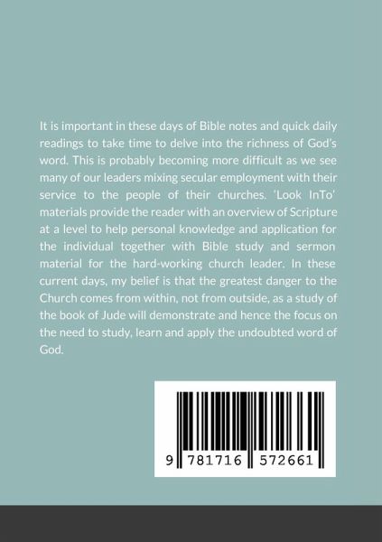 Look InTo materials provide the reader with an overview of Scripture at a level that helps enhance personal knowledge and application for the individual, along with Bible study and sermon material for the hard-working church leader. Look InTo series are intended to provide an overview of Bible books and highlight the main topics. In this way, the reader is left with a genuine sense of the specific biblical subject, with the hope that, in due time, they might be encouraged to pursue a deeper study. This study of the book of Jude aligns with our aims and focuses the reader on the need to study, learn, and apply the unambiguous word of God. Why? Because we live in a time when the Word of God has never been easier to obtain, yet it is a time when understanding that same word is so little understood. This creates one of the greatest dangers to the Church, which comes from within, not from outside.