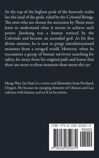 At the top of the highest peak of the heavenly realm lies the land of the gods, ruled by the Celestial Beings. The ones who are chosen for ascension by Them must learn to understand what it means to achieve such power. Junsheng was a human noticed by the Celestials and became an ascended god. As his first divine mission, he is sent to purge interdimensional monsters from a ravaged world. However, when he encounters a group of human survivors searching for safety, he strays from his original path and learns that there are more to these monsters than meets the eye.