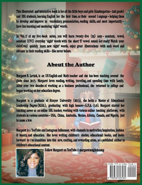This Vol. 2 of a five-book series is "Sight Words for Children (K-2nd Grade) & ESL The book provides twenty-five (25) easy, everyday (CVC) - constant, vowel, constant words to help ELA and ESL learners improve their vocabulary, sentence structure, and writing skills.