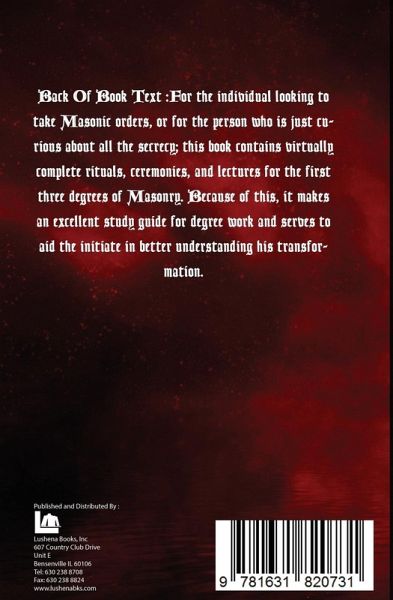 The complete work of the Entered Apprentice, Fellow-craft and Master-mason's Degrees, with their ceremonies, lectures, etc. It has doubtless been a matter of comment and surprise among the Members of the Fraternity that all the books which are avowedly intended to serve as guides to the Work of a Lodge invariably contain more or less than their professed object demands. They are usually deficient in the very points that may be most needed, rendering the use of a separate Monitor unavoidable; while, on the other hand, they include a great deal of information on matters with which every Mason is necessarily perfectly familiar, and which it is neither needful nor desirable to be communicated to the uninitiated. It has been the aim of the Compiler of this little volume to avoid both these defects: first, by omitting all Passwords, Grips, and other esoteric subjects; and second, by giving the Work of the first three degrees monitorially as well as ritually complete, in plain language for ready reference, and entirely free from the tedious perplexities of cypher or other arbitrary and unintelligible contractions.