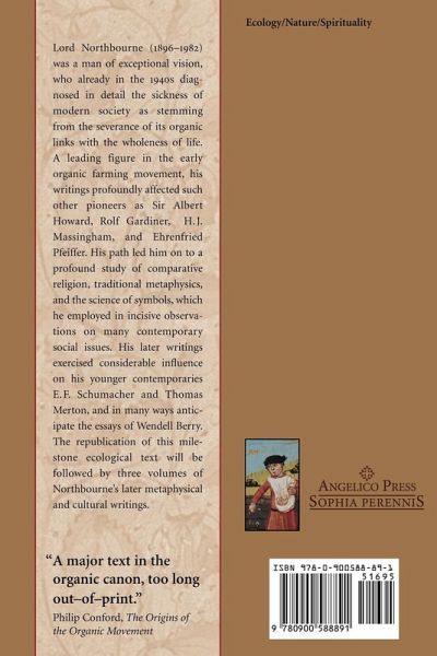Lord Northbourne (1896-1982) was a man of exceptional vision, who already in the 1940s diagnosed in detail the sickness of modern society as stemming from the severance of its organic links with the wholeness of life. A leading figure in the early organic farming movement, his writings profoundly affected such other pioneers as Sir Albert Howard, Rolf Gardiner, Ehrenfried Pfeiffer, and H. J. Massingham. His path led him on to a profound study of comparative religion, traditional metaphysics, and the science of symbols, which he employed in incisive observations on the character of modern society. His later writings exercised considerable influence on his younger contemporaries E. F. Schumacher and Thomas Merton, and in many ways anticipate the essays of Wendell Berry. The republication of this milestone ecological text will be followed by three volumes of Northbourne's later metaphysical and cultural writings.