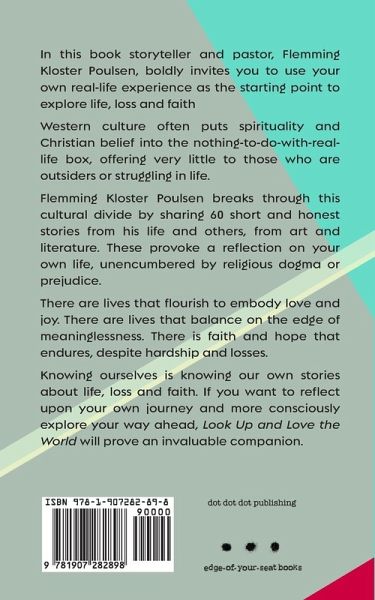 In Look Up and Love the World, Flemming Kloster Poulsen (storyteller and pastor of the Danish Church in London) boldly invites you to connect with your own real-life experience and use it as the starting point to explore meaning, life, death, faith and tragedy. Western culture often puts spirituality and Christian belief into the nothing-to-do-with-real-life box, offering very little to those who are outsiders or struggling in life. Flemming breaks through this cultural divide by sharing open and honest stories from his life and from art and literature. These provoke an internal conversation and reflection upon your own life. A conversation unencumbered by religious dogma, baggage or prejudice. The powerful impact of sharing a personal story. The moments in life where we were forced off the map. The deathbed regrets of someone who felt they'd never been themselves. The reminder to pay attention and relish life from the most unlikely of people. If you want to open up to the big questions, reflect honestly upon your own journey and more consciously explore your way ahead, Look Up and Love the World will prove an invaluable companion.