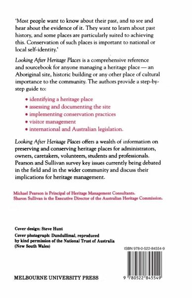 'Most people want to know about their past, and to see and hear about the evidence of it. They want to learn about past history, and some places are particularly suited to achieving this. Conservation of such places is important to national or local self-identity.' Looking After Heritage Places is a comprehensive reference and sourcebook for anyone managing a heritage place-an Aboriginal site, historic building or any other place of cultural importance to the community. The authors provide a step-by-step guide to: * identifying a heritage place * assessing and documenting the site * implementing conservation practices * visitor management * international and Australian legislation. Looking After Heritage Places offers a wealth of information on preserving and conserving heritage places for administrators, owners, caretakers, volunteers, students and professionals. Pearson and Sullivan survey key issues currently being debated in the field and in the wider community and discuss their implications for heritage management.