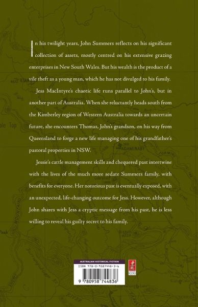 In his twilight years, John Summers reflects on his significant collection of assets, mostly centred on his extensive grazing enterprises in New South Wales. But his wealth is the product of a vile theft as a young man, which he has not divulged to his family. Jess MacIntyre's chaotic life runs parallel to John's, but in another part of Australia. When she reluctantly heads south from the Kimberley region of Western Australia towards an uncertain future, she encounters Thomas, John's grandson, on his way from Queensland to forge a new life managing one of his grandfather's pastoral properties in NSW. Jessie's cattle management skills and chequered past intertwine with the lives of the much more sedate Summers family, with benefits for everyone. Her notorious past is eventually exposed, with an unexpected, life-changing outcome for Jess. However, although John shares with Jess a cryptic message from his past, he is less willing to reveal his guilty secret to his family.