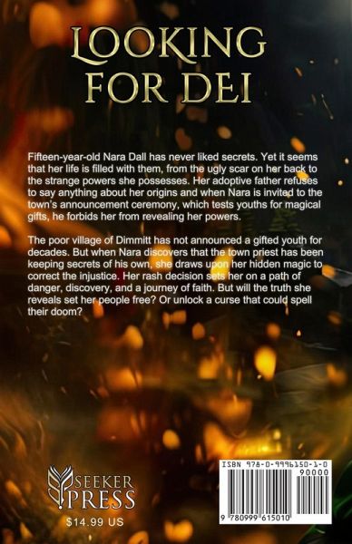 Fifteen-year-old Nara Dall has never liked secrets. Yet it seems that her life has been filled with them, from the ugly scar on her back to the strange powers she possesses. Her adoptive father refuses to say anything about her origins, and soon, she and her best friend must attend the announcement ceremony, in which youths are tested for a magical gift. A gifted youth has not been announced in the poor village of Dimmitt for decades. When Nara uncovers the reason, she uses her own powers to make things right. The decision sets her on a path of danger, discovery, and a search for the divine. In the process, she learns the truth about herself and uncovers the biggest secret of all: the power of broken people. Looking for Dei is written with multiple perspectives to provide a rich story-telling experience. Much of the positive feedback has been associated with great world-building, a gripping pace, and a unique, believable magic system. The story is heavy with action, vibrant villains, and great plot twists. Some themes that should appeal to both youthful and more mature readers are how fear prevents positive action, how those who experience pain often spread it around, and how every human being has a vast, inherent value.