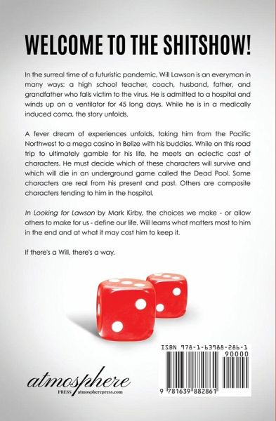 Welcome to the Shitshow! In the surreal time of a futuristic pandemic, Will Lawson is an everyman in many ways: a high school teacher, coach, husband, father, and grandfather who falls victim to the virus. He is admitted to a hospital and winds up on a ventilator for 45 long days. While he is in a medically induced coma, the story unfolds. A fever dream of experiences unfolds, taking him from the Pacific Northwest to a mega casino in Belize with his buddies. While on this road trip to ultimately gamble for his life, he meets an eclectic cast of characters. He must decide which of these characters will survive and which will die in an underground game called the Dead Pool. Some characters are real from his present and past. Others are composite characters tending to him in the hospital. In Looking for Lawson by Mark Kirby, the choices we make - or allow others to make for us - define our life. Will learns what matters most to him in the end and at what it may cost him to keep it. If there's a Will, there's a way.
