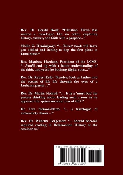 Readers look at Luther and the scenes of his life through the eyes of a Lutheran pastor, whose roots and personal experience as a citizen of both Germany and the U.S. give him a unique view of the places where Luther's life took place. His observations, sober and serious, light-hearted and humorous provide past, present, and future visitors with a sense of the geography and theology of the Wittenberg reformer.