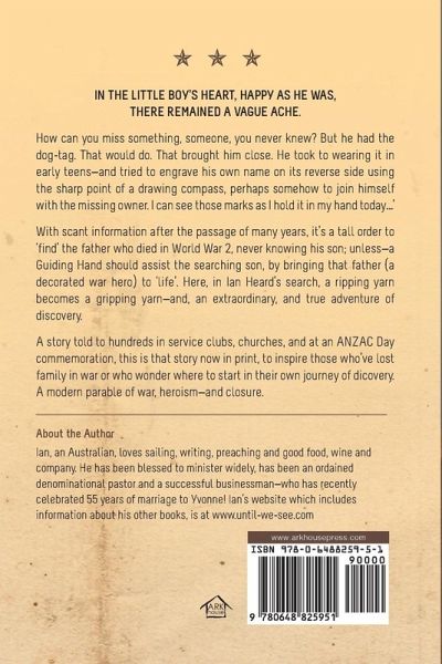 In the little boy's heart, happy as he was, there remained a vague ache. How can you miss something, someone, you never knew? But he had the dog-tag. That would do. That brought him close. He took to wearing it in early teens-and tried to engrave his own name on its reverse side using the sharp point of a drawing compass, perhaps somehow to join himself with the missing owner. I can see those marks as I hold it in my hand today…' With scant information after the passage of many years, it's a tall order to 'find' the father who died in World War 2, never knowing his son; unless-a Guiding Hand should assist the searching son, by bringing that father (a decorated war hero) to 'life'. Here, in Ian Heard's search, a ripping yarn becomes a gripping yarn-and, an extraordinary, and true adventure of discovery. A story told to hundreds in service clubs, churches, and at an ANZAC Day commemoration, this is that story now in print, to inspire those who've lost family in war or who wonder where to start in their own journey of dicovery. A modern parable of war, heroism-and closure.