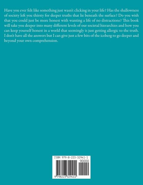 Have you ever felt like something just wasn't clicking in your life? Has the shalllowness of society left you thritsy for deeper the truths that lie beneath the surface? Do you wish that you could just be more honest with wanting a life of no distractions? This book will take you deeper into many different levels of our societal hireachies and how you can you keep yourself honest in a world that seemingly is just getting allergic to the truth. I don't have all the answers but I can give just a few bits of the iceberg to go deeper and beyond your own compreheion