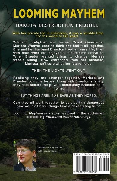 With her private life in shambles, it was a terrible time for the world to fall apart. Wildland firefighter and former Coast Guardsman Merissa Weaver used to think she had it all together. She and her husband Braedon lived an easy life, filled with hard work but enjoyable leisure-time activities. When Braedon wanted things to change, Merissa wasn't willing. Now estranged from her husband, Merissa isn't sure what her future holds. Then the lights went out. Realizing they are stronger together, Merissa and Braedon combine forces. Along with Braedon's family, they help secure the private community Braedon calls home. But things aren't as safe as they hoped. Can they all work together to survive this dangerous new world? Or will things take a devastating turn? Grab your copy today, and discover why readers love this twist on the post-apocalyptic genre! Looming Mayhem: A Dakota Destruction Prequel is the highly anticipated spinoff to the bestselling Havoc in Wyoming and Montana Mayhem Christian Futuristic series, which follows societal collapse from a small-town perspective. Featuring engaging scenarios, riveting action, and flawed yet strong and complex characters, the Dakota Destruction series is perfect for fans of Mark Goodwin, Jamie Lee Grey, and Kyla Stone. The Dakota Destruction series can be described as "Cozy" Apocalypse and contains no profanity, gratuitous sex scenes, or overly detailed gruesome death scenes. However, it does contain conservative family values and references to God, prayer, scripture, and Christianity.