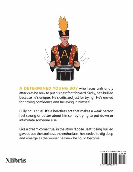 A determined young boy who faces unfriendly attacks as he seek to put his best foot forward. Sadly, he's bullied because he's unique. He's criticized just for trying. He's envied for having confidence and believing in himself. Bullying is cruel. It's a heartless act that makes a weak person feel strong or better about himself by trying to put down or intimidate someone else. Like a dream come true, in the story "Loose Beat" being bullied gave Jo Joe the coolness, the enthusiasm he needed to dig deep and emerge as the winner he knew he could become.
