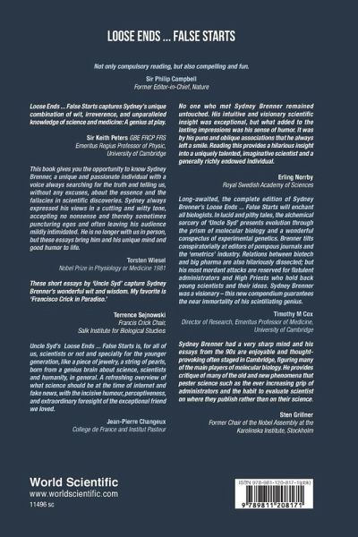 Sydney Brenner was born in South Africa and educated at the University of Witwatersrand, Johannesburg (Medicine and Science). He then moved to Oxford and received a D.Phil in 1952, before joining the MRC Unit in the Cavendish Laboratory in Cambridge in 1956. His various accomplishments include serving as the Director of MRC Laboratory of Molecular Biology in Cambridge, founding the Molecular Science Institute in Berkeley, holding the position of Distinguished Professor at the Salk Institute, La Jolla. And during his last years, Sydney Brenner played a key role in shaping research and development in the biomedical sector in Singapore as A*Star Senior Fellow. He was one of the greatest biologists of the 20th century and was awarded the Nobel Prize in 2002 for his pioneering work in the field of molecular biology. He was also known for his boundless curiosity, sharp intellect and courage to speak with clarity and characteristic wit as evident in this delightful book which is a compilation of the columns that he wrote for Current Biology in the late '90s.