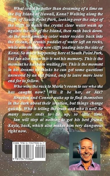 What could be better than dreaming of a time on the Big Island of Hawaii, Kona? Walking along the cliffs of South Point Park, looking over the edge of the cliffs to watch the crystal clear water wash up against the side of the Island, then rush back down. As the most amazing color water recedes back into the Ocean, it reveals puddles of water left on rocks, while also showing new cliffs leading into the side of Kona. So much happening here at South Point Park, but Ian also know this is not his memory. This is the moment he has been waiting for. This is the moment in his dreams he thinks he can get some questions answered by an old friend, only to leave more loose end for to follow. Who wins the race to Maria's room to see who she has caught now? Will it be her, or Jax? Brayden and Conner wake up to find themselves in the dark about their location, but things change quickly. Who is telling the truth and who is not? So many loose ends to tie up, so little time. Ian will stop at nothing to get his best friend, Kayla, back, which also makes him very dangerous right now.