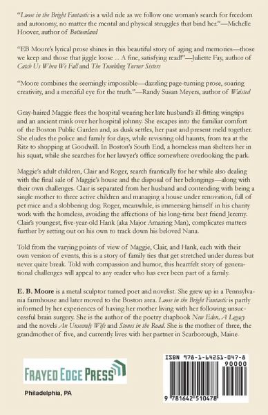 Loose in the Bright Fantastic is an adult fiction book that will be of interest to readers of women's fiction and family dramas, particularly those who are dealing with "sandwich generation" issues of caring both for growing children and aging parents. Grey-haired Maggie, who is in the early stages of dementia, flees her hospital room and takes refuge in Boston's Public Gardens and later in the squat of a homeless man she befriends. She is looking for something, or trying to stop something, although she cannot always remember exactly what. Her adventures end with her invading a dinner party at a home where she used to live, years before. While all this is going on, her adult children Clair and Roger are interacting with the police and trying to find her -- while dealing with the sale of Maggie's home and the disposal of her possessions, along with their own challenges as a divorced single mother and a closeted gay man. Told with humor and compassion, this is a heartfelt story of family ties that get stretched under duress but never quite break.