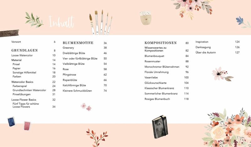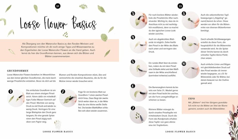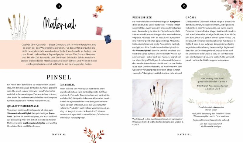 einen kompakten Grundlagenteil zur Watercolor-Technik und Farbkompositionüber 20 Schritt-für-Schritt-Anleitungen zu Blättern, Blüten und mehrGeling-Garantie für Einsteiger und Fortschrittene: Mit der Loose-Watercolor-Technik kann jeder umwerfende Blumenarrangements gestaltenAbwechslung für Lettering-Künstler, die ihre Buchstabenkunst mit floralen Elementen bereichern möchten