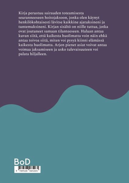 Kirja perustuu sairauden toteamisesta seuranneeseen hoitojaksoon, jonka olen käynyt henkilökohtaisesti lävitse kaikkine ajatuksineni ja tuntemuksineni. Kirjan sisältö on niille tuttua, jotka ovat joutuneet samaan tilanteeseen. Haluan antaa kuvan siitä, että kaikesta huolimatta voin näin ehkä antaa toivoa siitä, miten voi pysyä kiinni elämässä kaikesta huolimatta. Arjen pienet asiat voivat antaa voimaa jaksamiseen ja usko tulevaisuuteen voi palata hiljalleen.