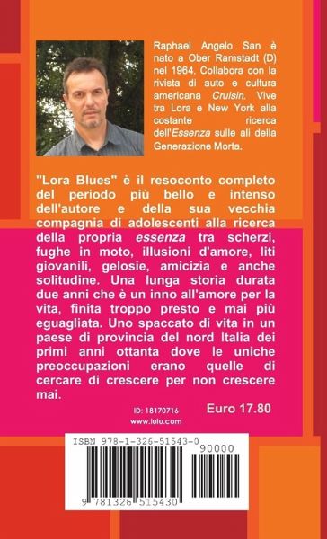 "Lora Blues" è il resoconto completo del periodo più bello e intenso dell'autore e della sua vecchia compagnia di adolescenti alla ricerca della propria "Essenza" tra scherzi, fughe in moto, illusioni d'amore, liti giovanili, gelosie, amicizia e anche solitudine. Una lunga storia durata due anni che è un inno all'amore per la vita, finita troppo presto e mai più eguagliata. Uno spaccato di vita in un paese di provincia del nord Italia dei primi anni ottanta dove le uniche preoccupazioni erano quelle di cercare di crescere per non crescere mai.