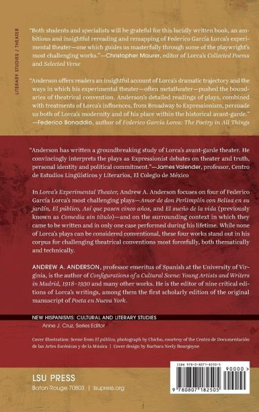 "Critical and historical discussions of the life and work of Federico Garcâia Lorca often prioritize his stunning modernist poetry and popular dramas while obscuring the author's more avant-garde dramatic works. In Lorca's Experimental Theater: Breaking the Guardrails of Convention, Andrew A. Anderson focuses on four of Lorca's most challenging plays-Amor de don Perlimplâin con Belisa en su jardâin, El pâublico, Asâi que pasen cinco aänos, and El sueäno de la vida (previously known as Comedia sin tâitulo)-and on the surrounding context in which they came to be written and in only one case performed during his lifetime. While none of Lorca's plays can be considered conventional, according to Anderson, some of them are nevertheless more approachable than others. The four considered here are the works that challenge theatrical conventions most forcefully, both thematically and technically. The introduction offers a brief overview of Lorca's entire dramatic output and the place within it of his four most experimental plays. The first chapter, "Staging the Unstageable," gives details concerning the chronology of the plays' composition, what Lorca had to say about them in newspaper interviews, and, most importantly, his numerous attempts to get what he called his "unperformable plays" actually performed. After a chapter on the pervasive role of undecidability in Amor de don Perlimplâin, two further contextual chapters cover what Anderson considers the most significant factors that encouraged Lorca to continue experimenting in his dramatical works, namely his exposure to theater in New York over 1929-1930 and his increasing familiarity with expressionist drama that he both read and heard about from other theater professionals. From there, El pâublico and Asâi que pasen cinco aänos each receive two chapters devoted to their themes and symbols, and the book ends with a final chapter on how audiences could experience a staging of El sueäno de la vida. By synthesizing materials drawn from theatrical practice, artistic modernism, and the historical avant-garde, Lorca's Experimental Theater gives an integrated picture of this corpus by providing detailed readings of the plays, surveying their textual and performative history, and examining the most important contemporary influences on Lorca's creation of these expressive, innovative works"--