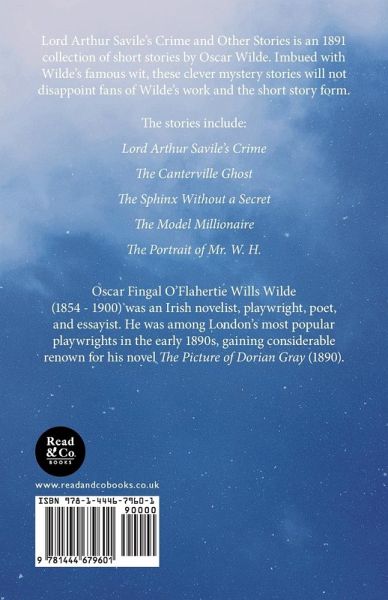 "Lord Arthur Savile's Crime and Other Stories" is an 1891 collection of short stories by Oscar Wilde. Imbued with Wilde's famous wit, these clever mystery stories will not disappoint fans of Wilde's work and the short story form. The stories include: "Lord Arthur Savile's Crime", "The Canterville Ghost", "The Sphinx Without a Secret", "The Model Millionaire" and "The Portrait of Mr. W. H.". Oscar Fingal O'Flahertie Wills Wilde (16 October 1854 - 30 November 1900) was an Irish novelist, playwright, poet, and essayist. He was among London's most popular playwrights in the early 1890s, gaining considerable renown for his novel "The Picture of Dorian Gray" (1890). Other notable works by this author include: "The Ballad of Reading Gaol" (1898), "The Importance of Being Earnest" (1895), and "Salome" (1891). Read & Co. Classics is proudly republishing this classic letter now in a new edition complete with a specially-commissioned new biography of the author.
