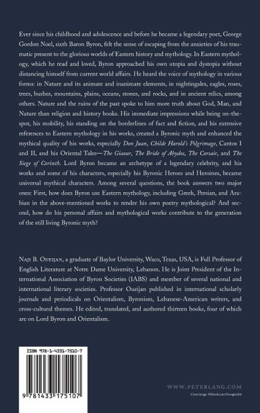 Ever since his childhood and adolescence and before he became a legendary poet, George Gordon Noel, sixth Baron Byron, felt the sense of escaping from the anxieties of his traumatic present to the glorious worlds of Eastern history and mythology. In Eastern mythology, which he read and loved, Byron approached his own utopia and dystopia without distancing himself from current world affairs. He heard the voice of mythology in various forms: in Nature and its animate and inanimate elements, in nightingales, eagles, roses, trees, bushes, mountains, plains, oceans, stones, and rocks, and in ancient relics, among others. Nature and the ruins of the past spoke to him more truth about God, Man, and Nature than religion and history books. His immediate impressions while being on-the-spot, his mobility, his standing on the borderlines of fact and fiction, and his extensive references to Eastern mythology in his works, created a Byronic myth and enhanced the mythical quality of his works, especially Don Juan, Childe Harold's Pilgrimage, Cantos I and II, and his Oriental Tales-The Giaour, The Bride of Abydos, The Corsair, and The Siege of Corinth. Lord Byron became an archetype of a legendary celebrity, and his works and some of his characters, especially his Byronic Heroes and Heroines, became universal mythical characters. Among several questions, the book answers two major ones: First, how does Byron use Eastern mythology, including Greek, Persian, and Arabian in the above-mentioned works to render his own poetry mythological? And second, how do his personal affairs and mythological works contribute to the generation of the still living Byronic myth?