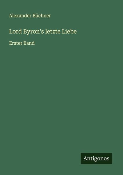 Unveränderter Nachdruck der Originalausgabe von 1862. Lord Byron's letzte Liebe Der Verlag Antigonos spezialisiert sich auf die Herausgabe von Nachdrucken historischer Bücher. Wir achten darauf, dass diese Werke der Öffentlichkeit in einem guten Zustand zugänglich gemacht werden, um ihr kulturelles Erbe zu bewahren.