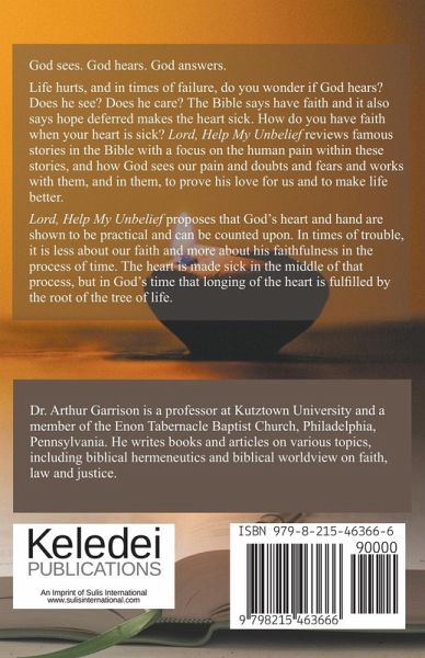 God sees. God hears. God answers. Life hurts, and in times of failure, do you wonder if God hears? Does he see? Does he care? The Bible says have faith and it also says hope deferred makes the heart sick. How do you have faith when your heart is sick? Lord, Help My Unbeliefreviews famous stories in the Bible with a focus on the human pain within these stories, and how God sees our pain and doubts and fears and works with them, and in them, to prove his love for us and to make life better. Lord, Help My Unbelief proposes that God's heart and hand are shown to be practical and can be counted upon. In times of trouble, it is less about our faith and more about his faithfulness in the process of time. The heart is made sick in the middle of that process, but in God's time that longing of the heart is fulfilled by the root of the tree of life.