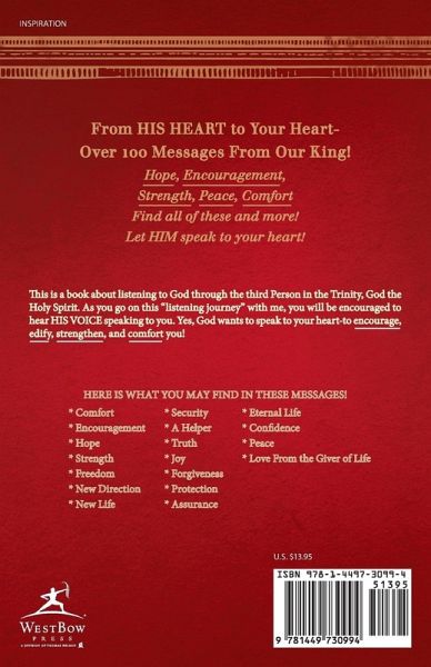This is a book about listening to God through the third person in the trinity, God the Holy Spirit. As you go on this "Listening Journey" with me, you will be encouraged to hear his voice speaking to you. Yes, God wants to speak to your heart- to encourage, edify, strengthen, and comfort you!