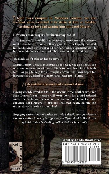 Death runs rampant in Victorian London, yet one viscount never expected it to strike at him so harshly, stealing his love and turning him into Lord Misery! How can a man prepare for the unimaginable? Lord Jameson Turner's life has been topsy-turvy, from illegitimacy to titled nobility, from a solitary gambler to a happily married husband. When bent steel and horrific wreckage upend his world, he buries his beloved along with his heart and his happiness. A lady who won't take no for an answer! Maisie Darrow understands grief all too well. She also knows the only way to move on with one's life is to jump back in with both feet. Longing to help the distraught viscount, her own hopes for happiness are dashed by a mysterious letter from home. A devastated viscount and a wounded soul . . . Having already loved and lost, the viscount vows neither time nor Miss Darrow's sunny smile will wear down his grief-hardened walls, for he knows he cannot survive another blow. Can she convince Lord Misery to risk his shattered heart, despite the uncertainty that swirls around her Engaging characters, attention to period detail, and passionate romance with a touch of intrigue - you'll find it all in the stories by USA Today bestselling author Sydney Jane Baily.