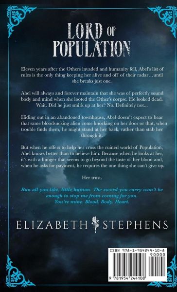 Dark and action-packed, Lord of Population is a steamy, end of days romance ripe with unexpected twists and epic battles, perfect for fans of JR Ward or Laura Thalassa. She thinks she can steal from me, the little human. Adorable. I can't decide what will be more fun - the hunt, or what I will do to her when I catch her. And I will catch her. There is nowhere she can run. Abel was of perfectly sound body and mind when she looted the Other's corpse. He looked dead. Wait. Did he just smirk up at her? No. Definitely not... Hiding out in an abandoned townhouse, Abel doesn't expect to hear that same bloodsucking alien come knocking on her door or that, when trouble finds them, he might stand at her back, rather than stab her through it. But when he offers to help her cross the ruined world of Population, Abel knows better than to believe him. Because when he looks at her, it's with a hunger that seems to go beyond the taste of her blood and, when he asks for payment, he requires the one thing she can't give up. Her trust. Run all you like, little human. The sword you carry won't be enough to stop me from coming for you. You're mine. Blood. Body. Heart. * * * * * * * * * * Lord of Population is a relaunched and combined edition of Population and Saltlands, by the same author. The content therein remains the same. Lord of Population ends with an HEA (NO cliffhanger) and features a rebellious human heroine of color and an inhuman hero with fangs. This is a dark romance with medium-high heat levels and will not be suitable for young or sensitive readers. Additional TWs can be found in the first pages visible in the preview.