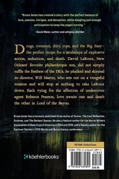Drugs, romance, dirty cops, and the Big Easy-the perfect recipe for a jambalaya of explosive action, seduction, and death. David LaRoux, New Orleans' favorite philanthropic son, did not simply ruffle the feathers of the DEA; he plucked and skinned its director, Will Martin, who sets out on a vengeful mission and will stop at nothing to take LaRoux down. Each vying for the affection of undercover agent Rebecca Pearson, love awaits one and death the other in Lord of the Bayou.